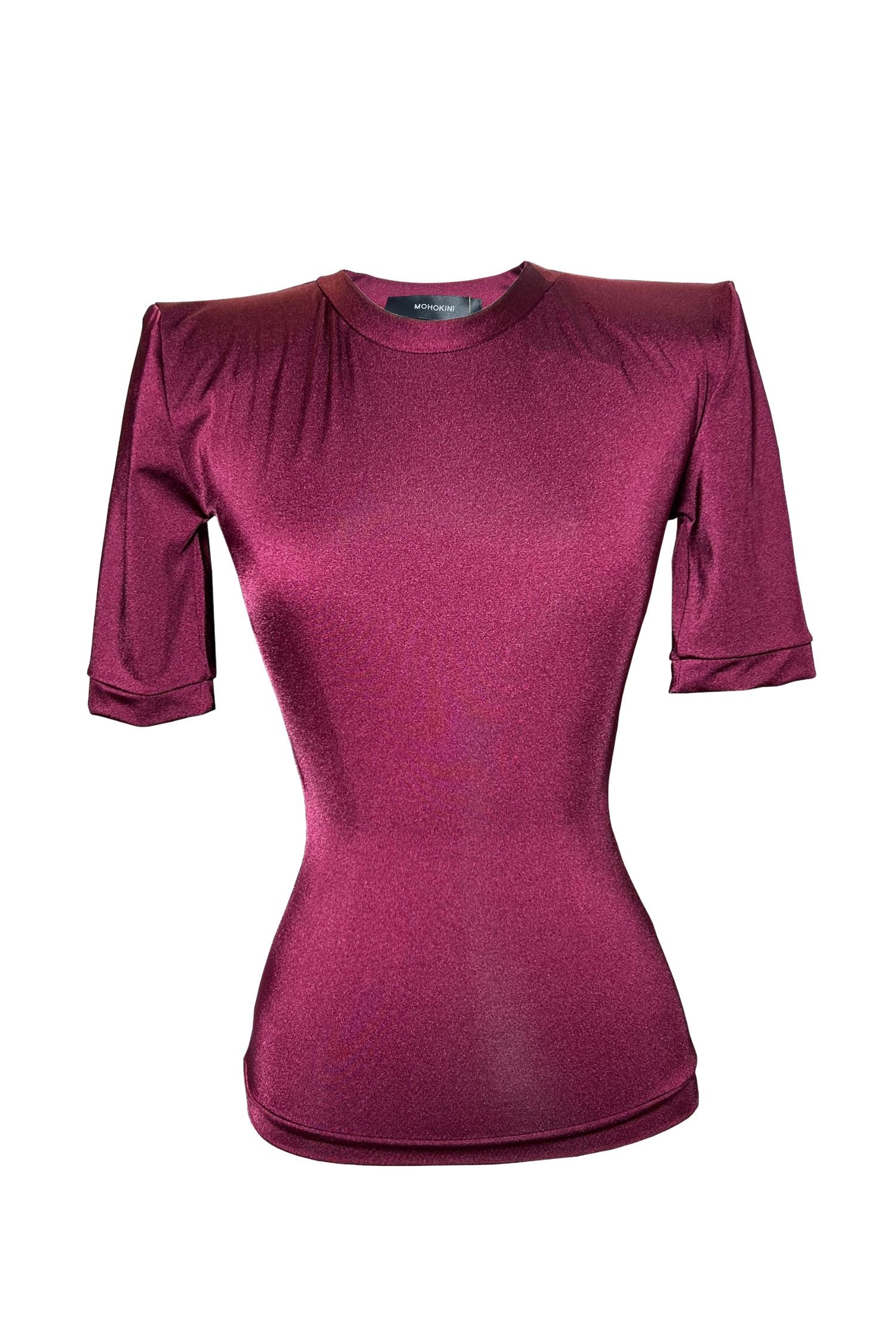 ANITA PADDED SHOULDER CROPPED TSHIRT | BURGUNDY MESH