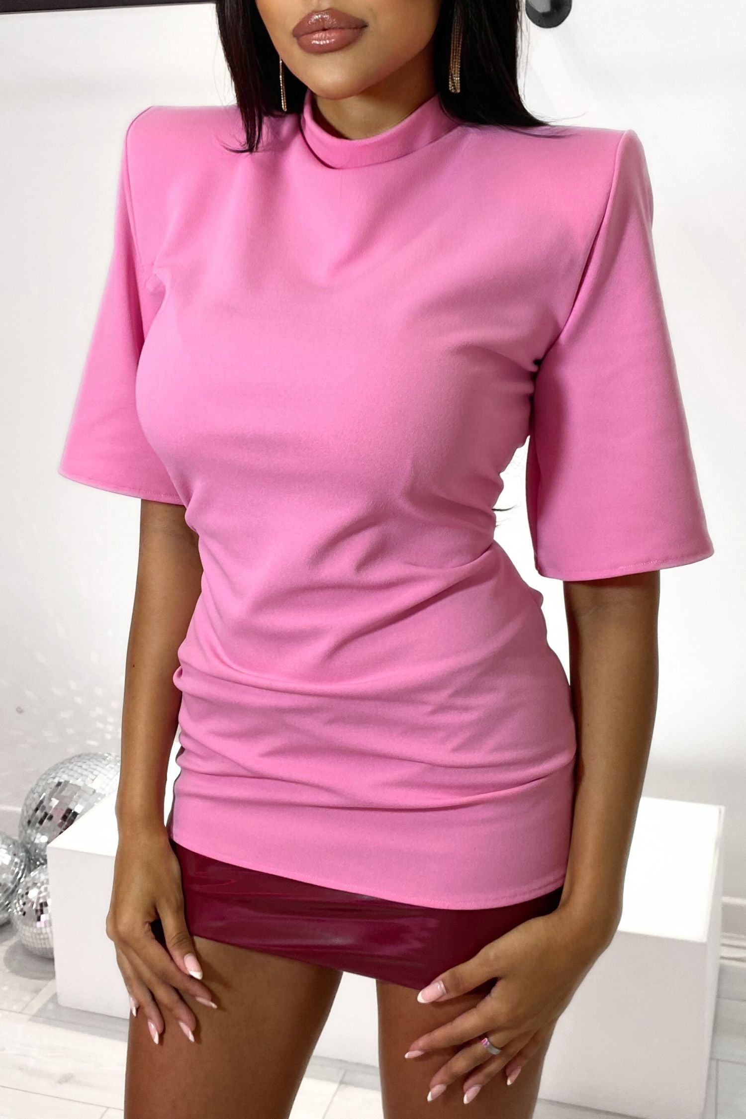 ANITA PADDED SHOULDER TSHIRT AND SEQUIN SKIRT - PINK MACAROON