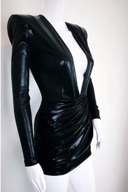 We are obsessed with this super shiny mini dress. Featuring a plunging neckline and ruched detailing. Choose CASSIE for a super chic pulled together evening look. Available in a variety of colours listed below -Rusched skirt -Plunge neck -Cool hand wash -Dry flat . colours left to right on swatch card WHITE GLOSS TEAL GLOSS VIOLET GLOSS GRAPE GLOSS GINGER GLOSS BLACK GLOSS GREEN GLOSS COBALT GLOSS DARK GOLD GLOSS GOLD GLOSS SILVER GLOSS SILVER REPTILE