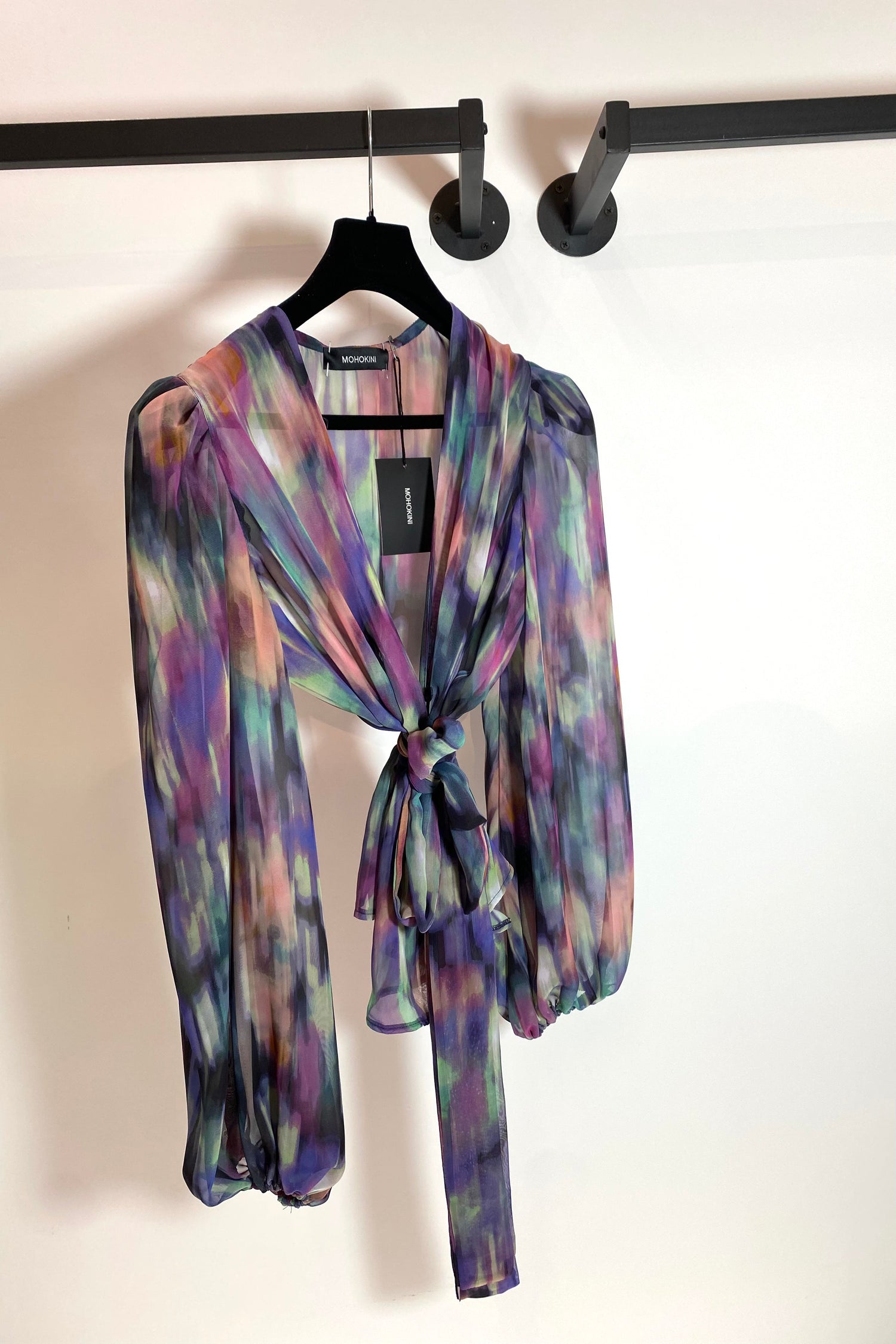 Add a statement touch to your casual / chic wardrobe with our Tie Waist Blouse. Crafted from a premium sparkle fabric, this sheer blouse is decorated with an all-over leopard print. Complete with drop lantern sleeves, elasticated cuffs, a removable belt.