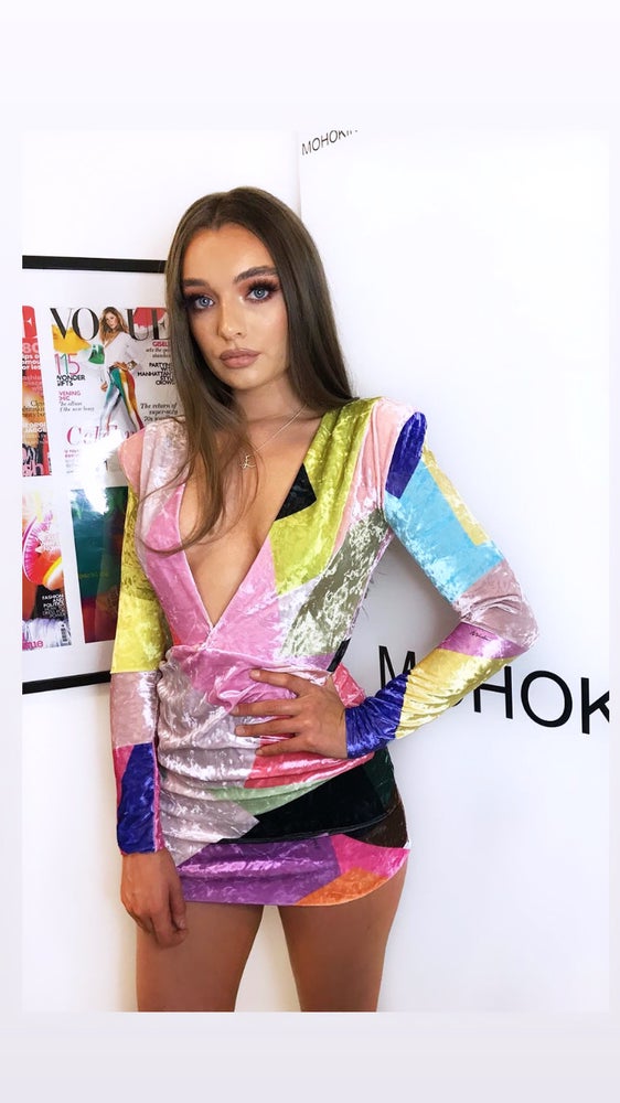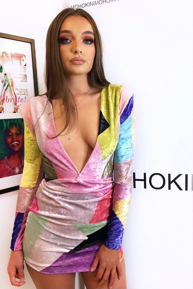 Featuring our signature deep plunge and a touch of ruched detailing, the EBONIE mini-dress is stunning in this unique and eye catching print that is typical of our aesthetic. The exclusive Miami print is rich and bright in velvet with a shimmer and shine that we love! Also available to order bespoke in a variety of fabrics. Another show stopper perfect for your next night out! - Soft, shiny fabric - Highly stretchy - Deep plunge neck - Stretch velvet Warm hand wash, low tumble dry heat, hang to dry, do not wring, low heat iron.