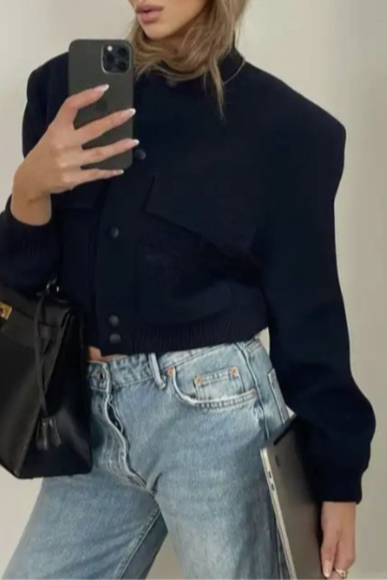 The EDEN BLACK BOMBER JACKET is the perfect addition to your fall wardrobe. This bomber jacket is sure to add an edgy, yet classy look to any evening ensemble. Its sleek silhouette flatters any figure, making it the perfect piece for stepping out in style.