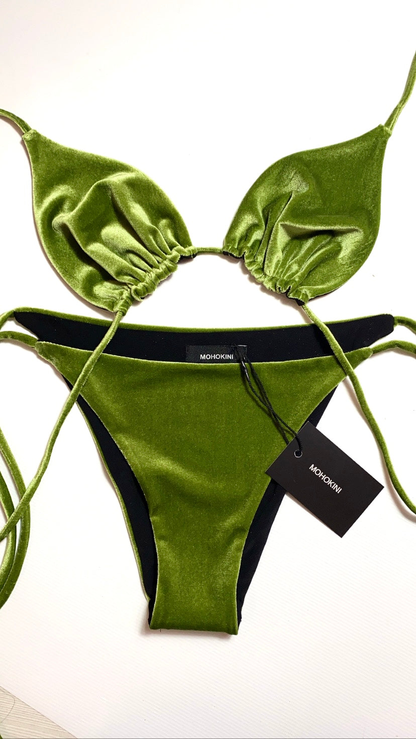 FLORA TRIANGLE BIKINI - BOTTLE GREEN VELVET IN STOCK 8