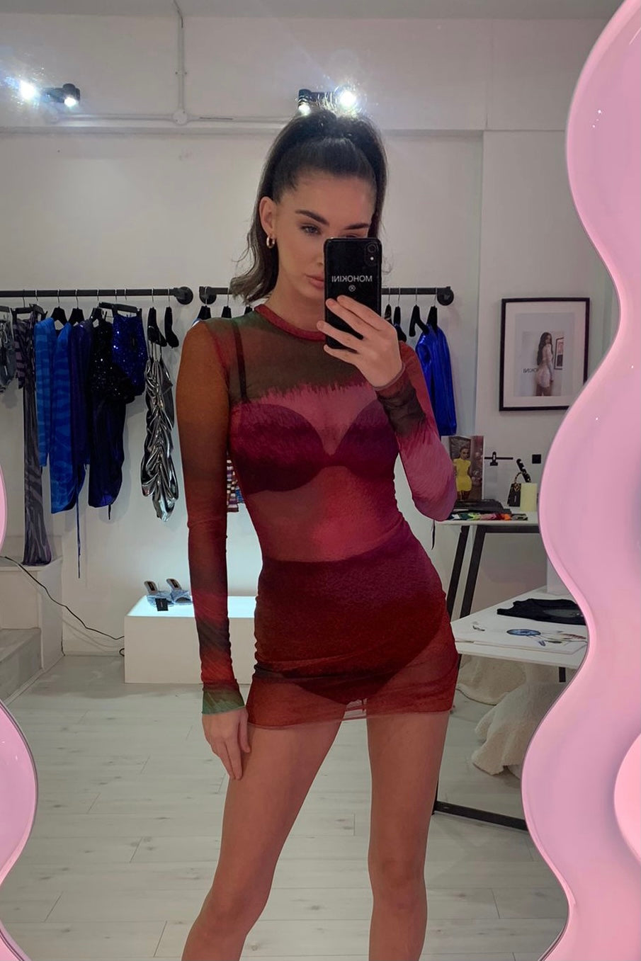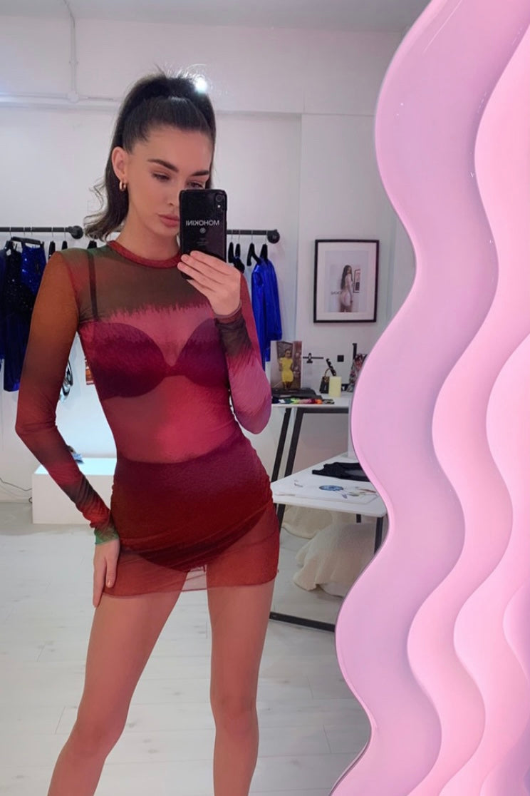 Long sleeve mesh mini in an original & exclusive MOHOKINI print. Wear this dress over high waisted knickers and a bralet.