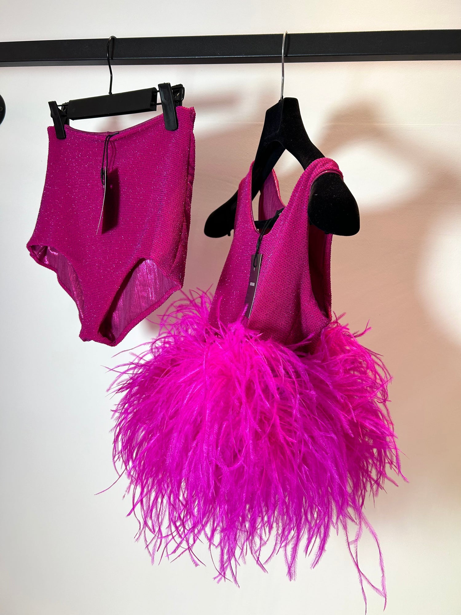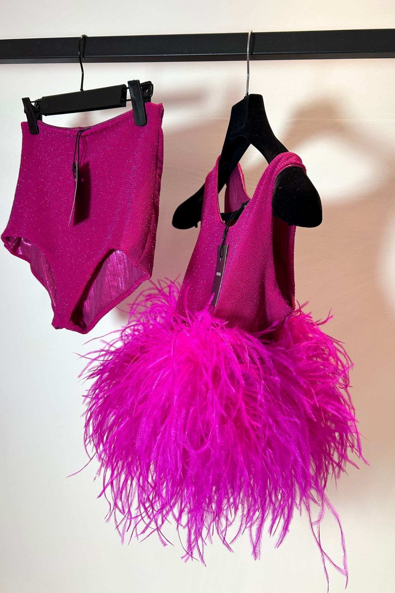 Introducing the elegant LIBERTY FEATHER TRIM CO-ORD, designed with sparkling accents and detailed craftsmanship. This luxurious set features a fully-lined vest and matching nicker shorts. Our feathers the finest quality and are custom-made in the U.K. Step out in style this season with a show stopping set you won't find anywhere else. Limited quantities available.