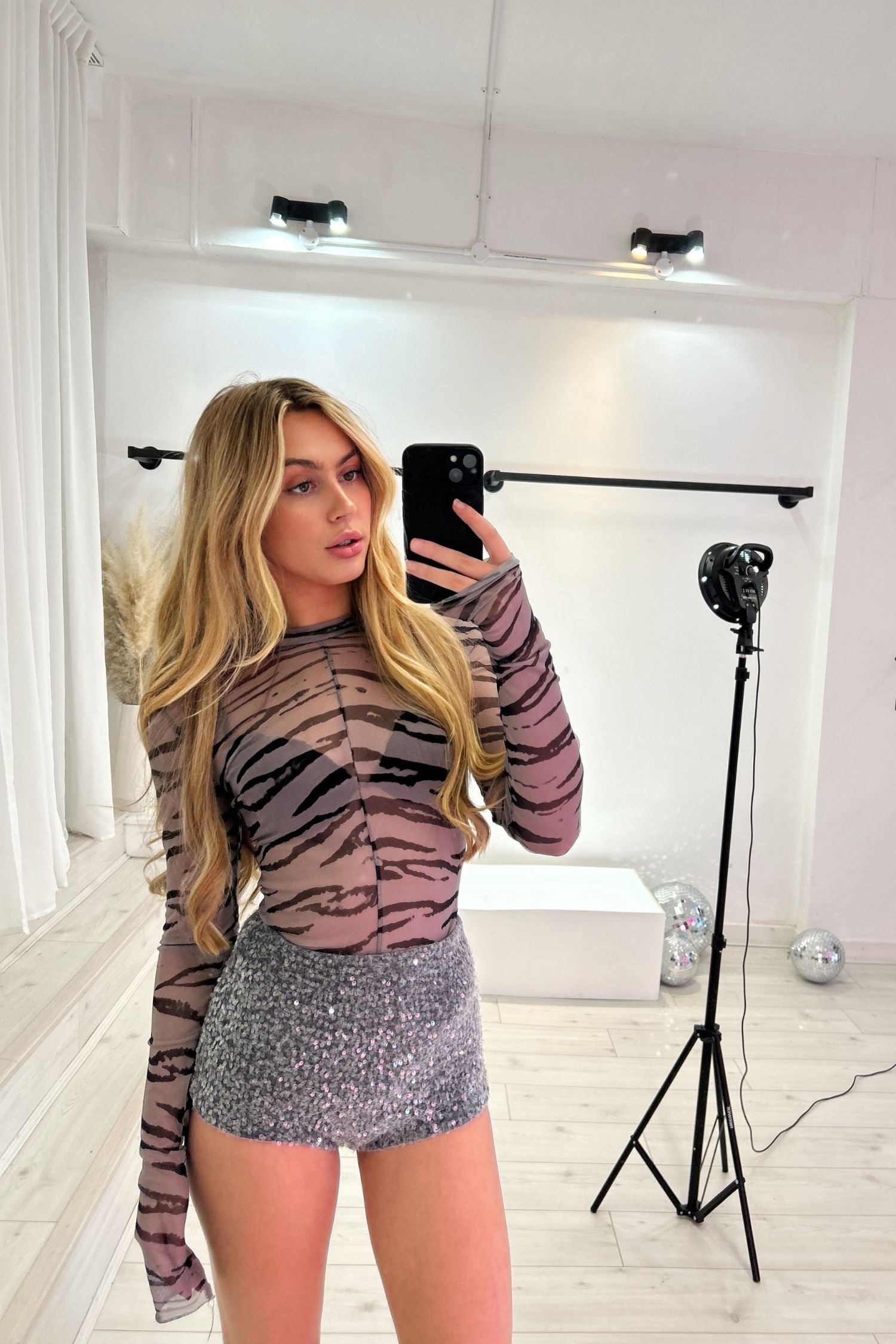 GREY SEQUIN MELODY SHORTS IN STOCK READY TO SEND