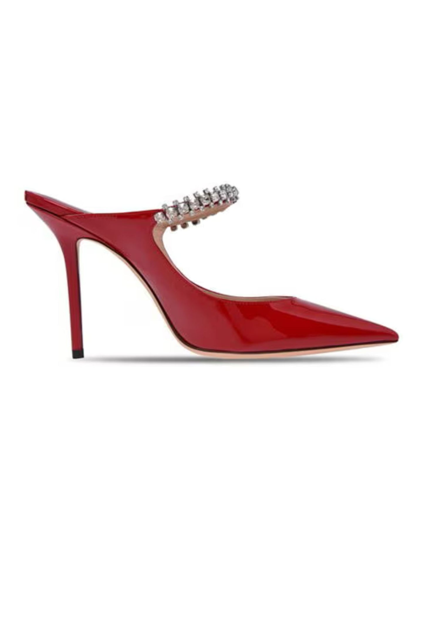 Crafted in shiny patent leather, the Odette mules exude timeless glamour. These slip-ons feature an elegant pointed toe and a sparkling crystal-embellished strap, adding a touch of sophistication to any ensemble. Designed with a low vamp and high stiletto heel, they are a perfect choice for special occasions or evenings out.