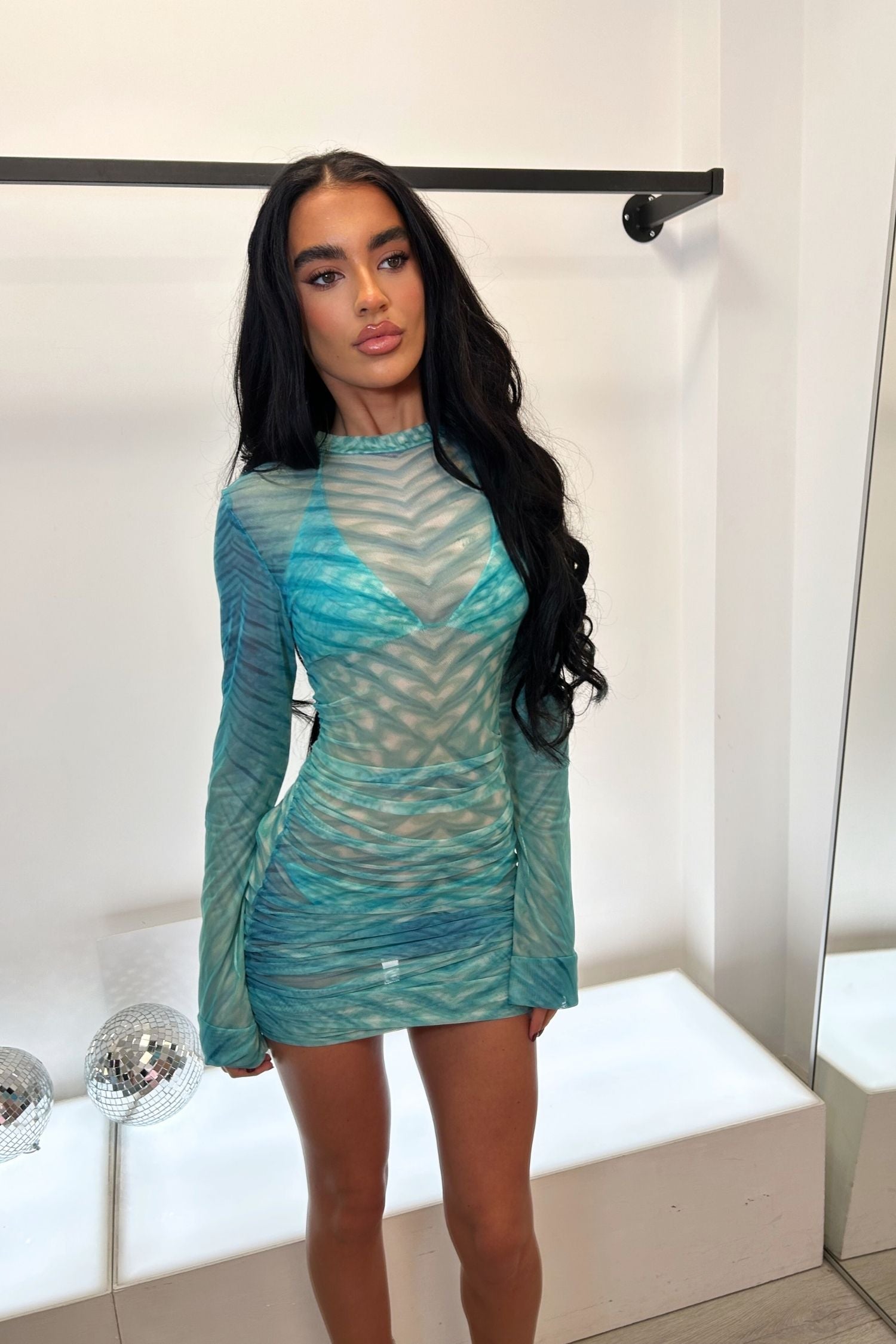 Introducing the RUMI RUCHED MINI DRESS—your ticket to looking absolutely fabulous without breaking a sweat. Crafted in gorgeous Azura Print Mesh, this stunner transitions seamlessly from poolside lounging to evening glamour. The ruched design and stretchy fabric create a flattering silhouette that feels as good as it looks.