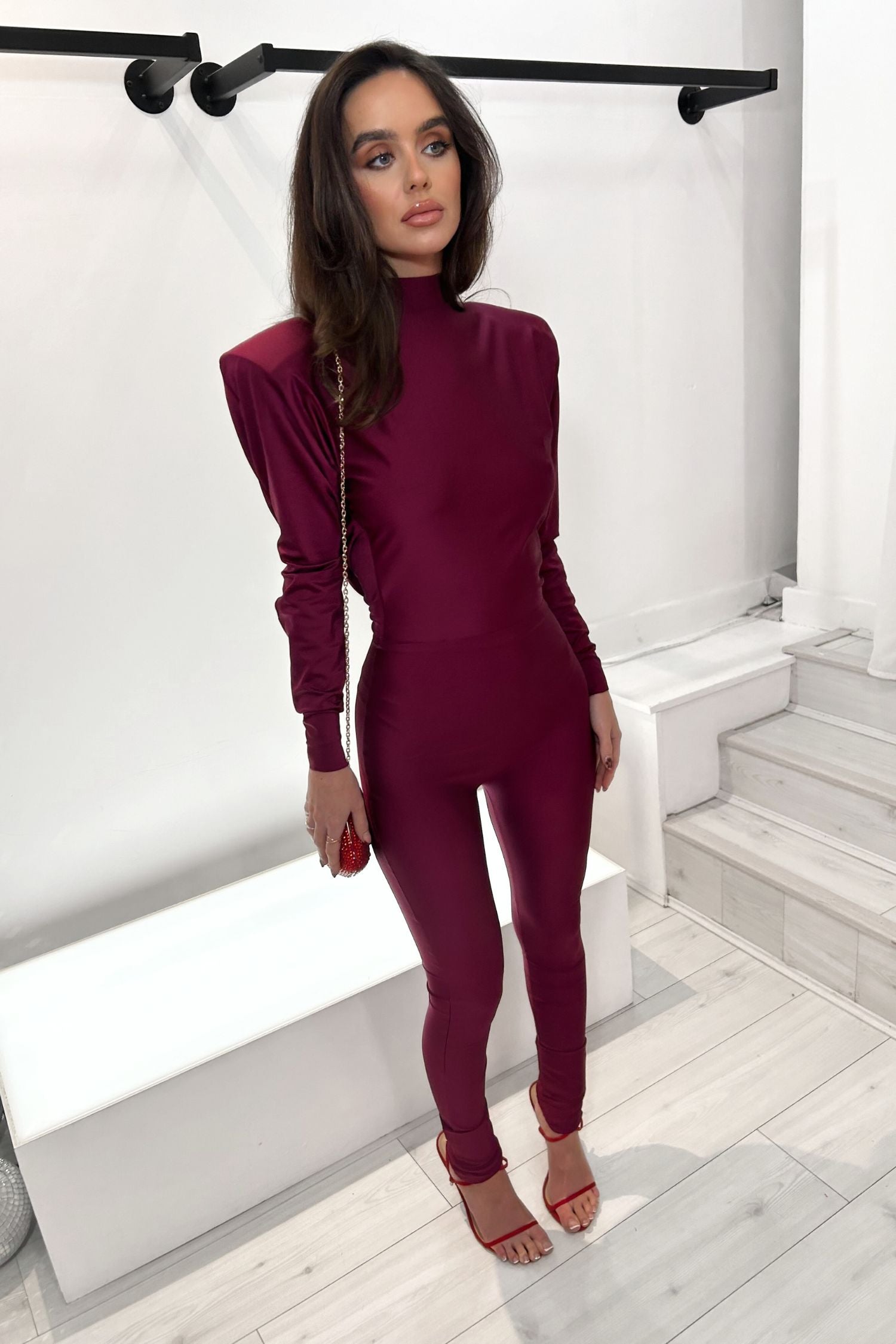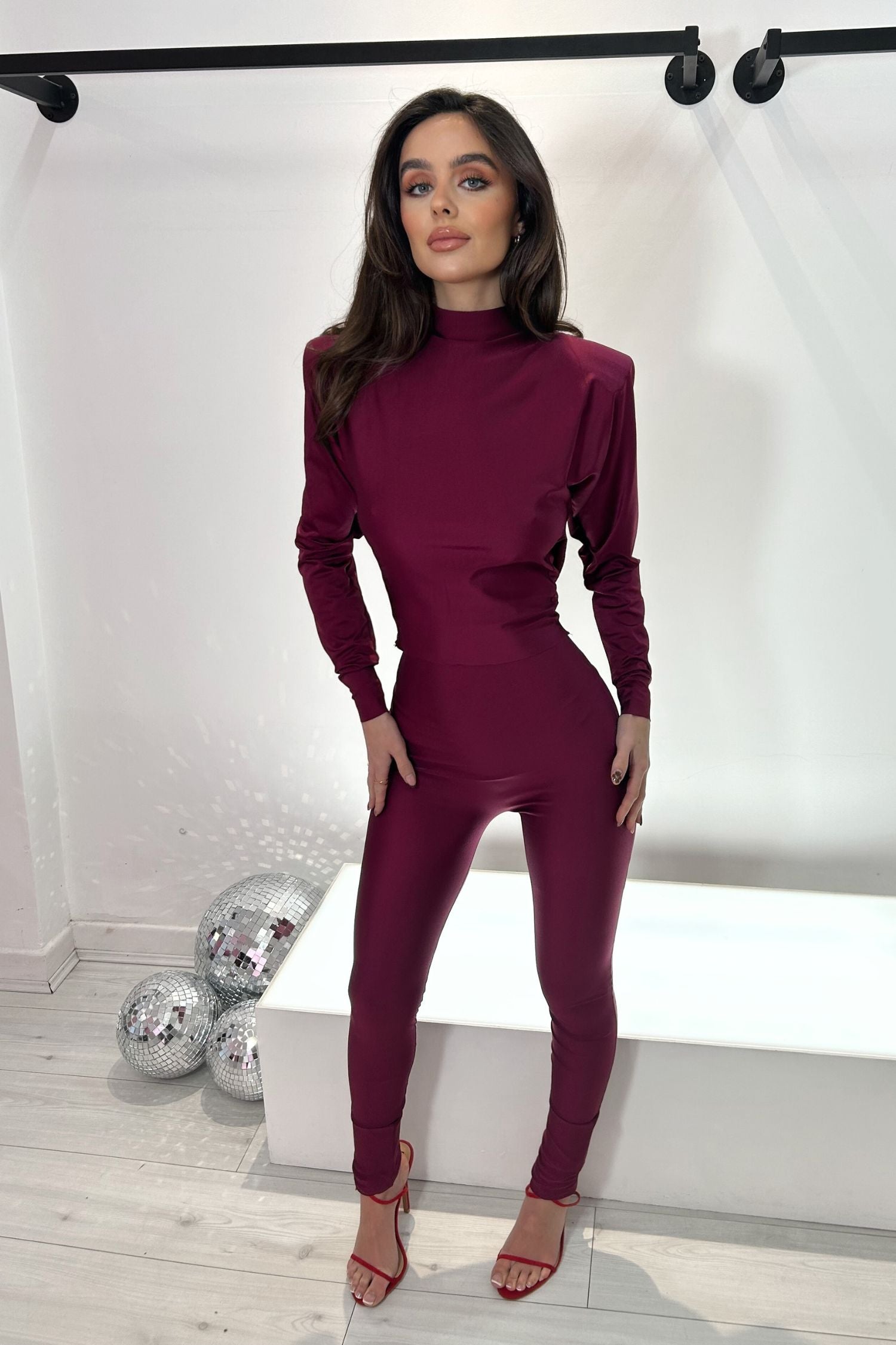SIENNA COWL BACK JUMPSUIT - FINE WINE
