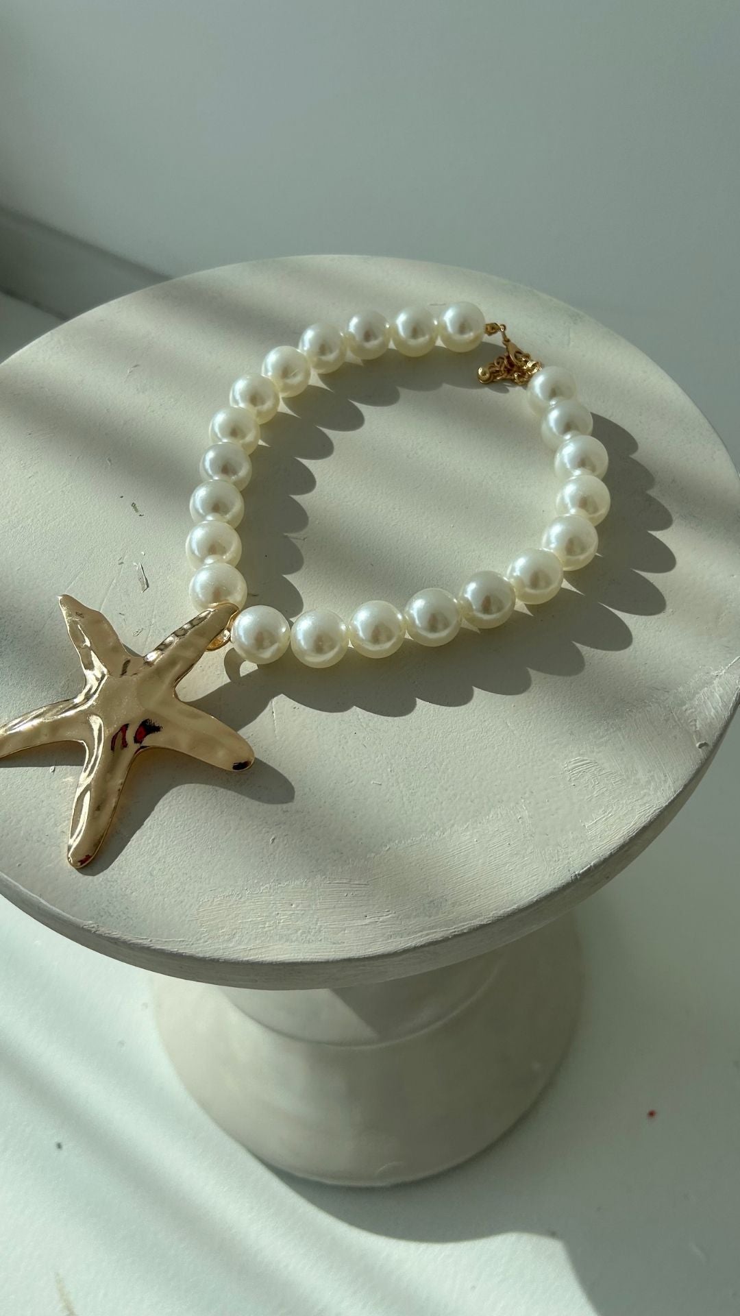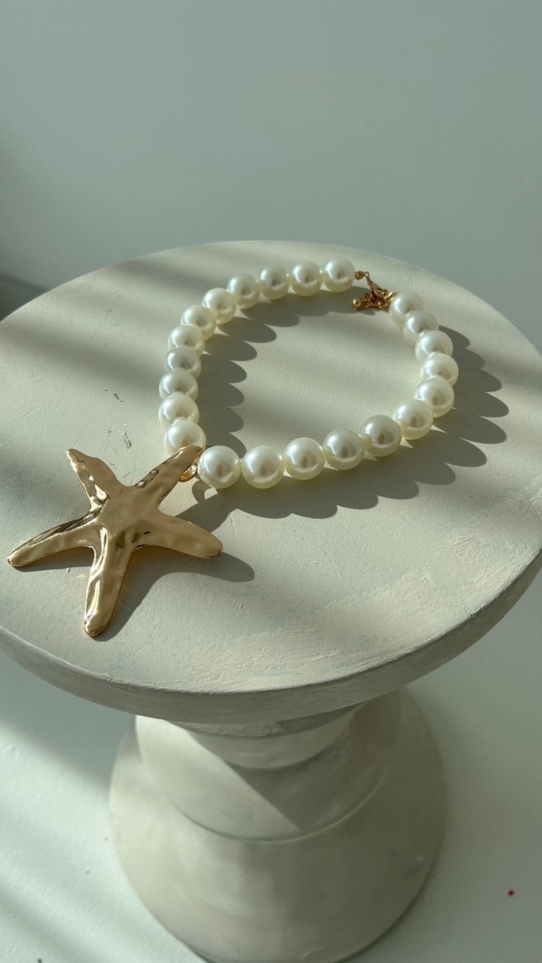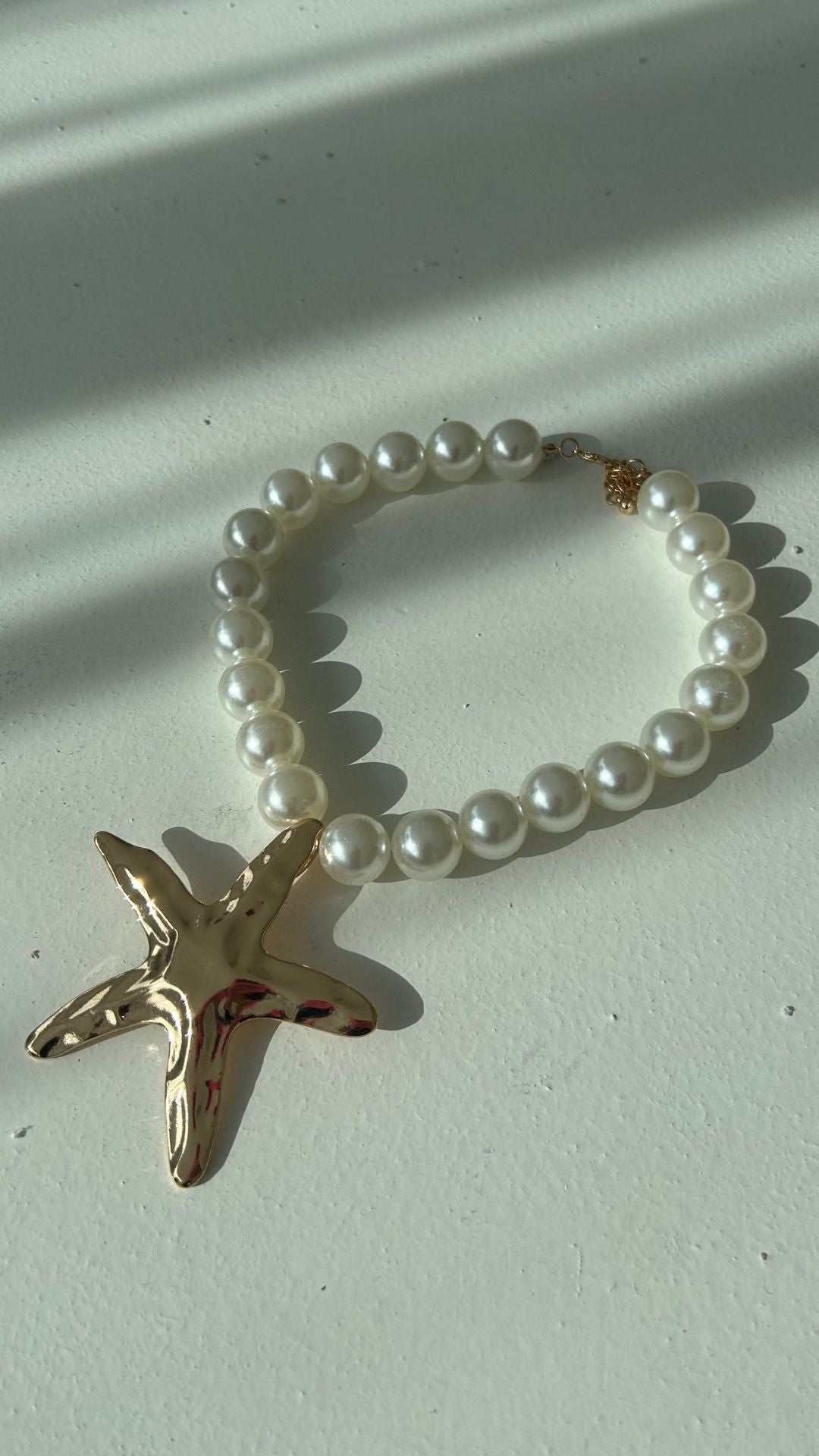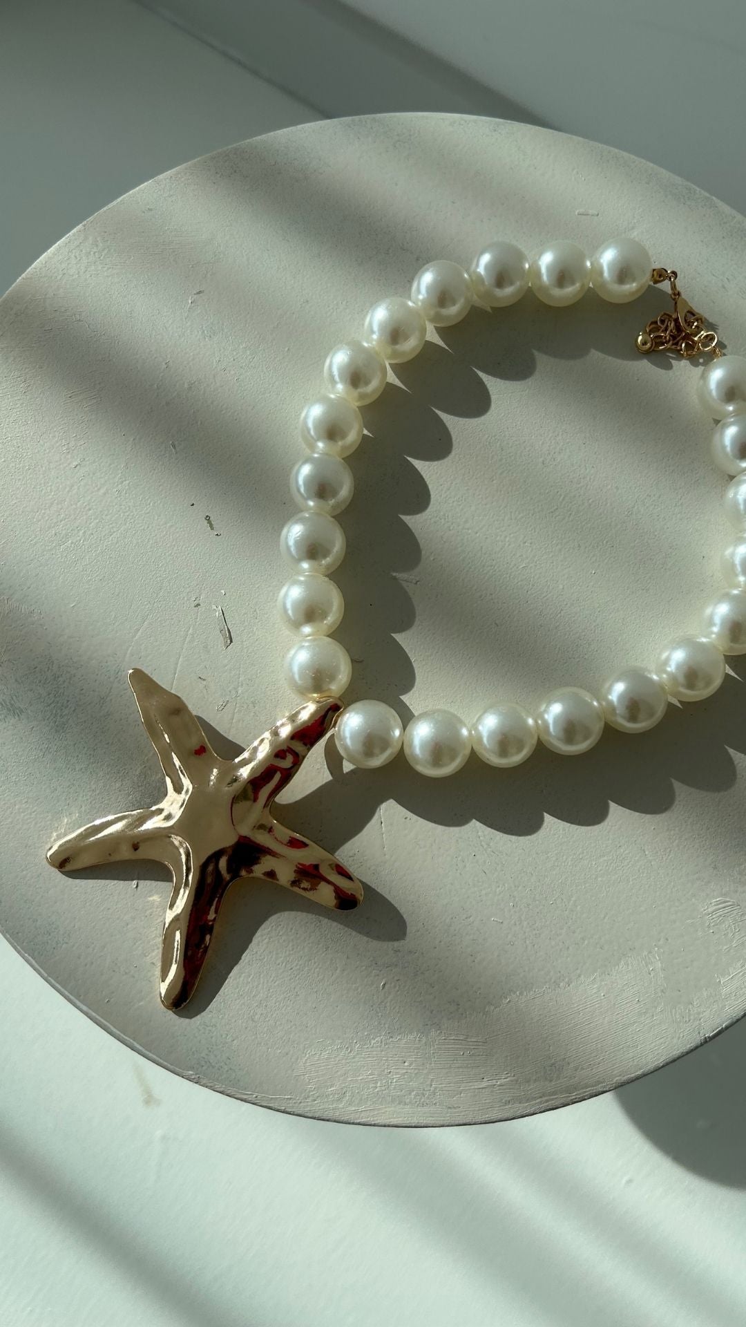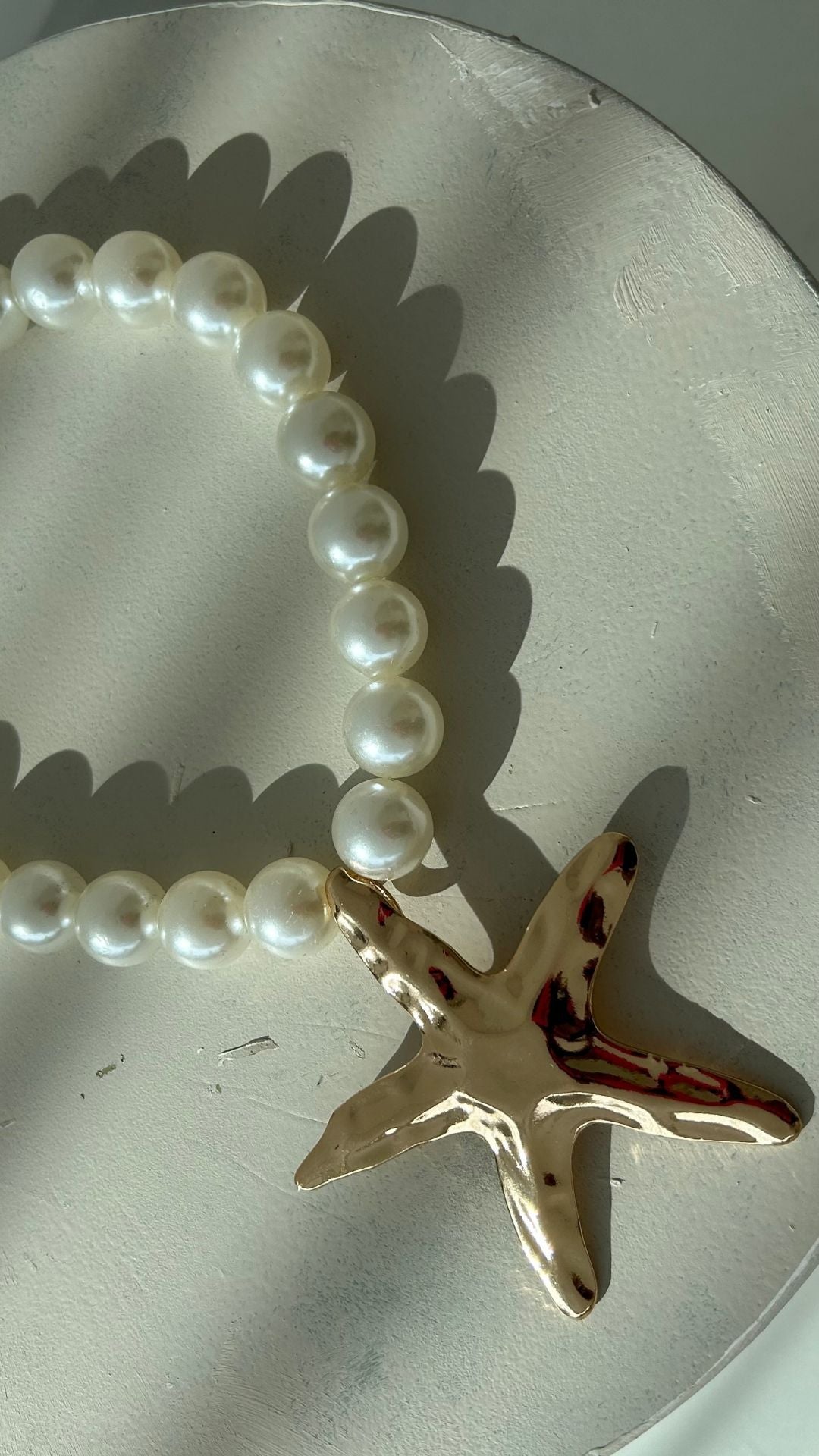 Discover the exclusive STARFISH PEARL NECKLACE, crafted from fine pearls and adorned with a beautiful starfish charm. An elegant and tasteful accessory, it will add a touch of luxury to any outfit. Elegantly drape it around your neck for a timeless and sophisticated look.